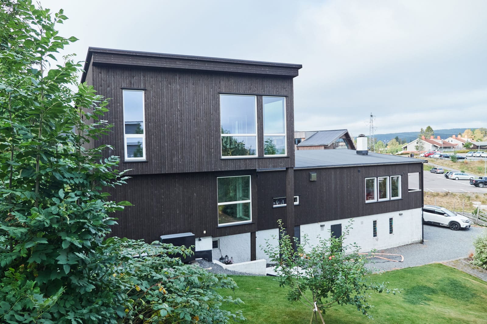 På Midskogveien er Superwood valgt, da kunden ønskede træpaneler som facadebeklædning.