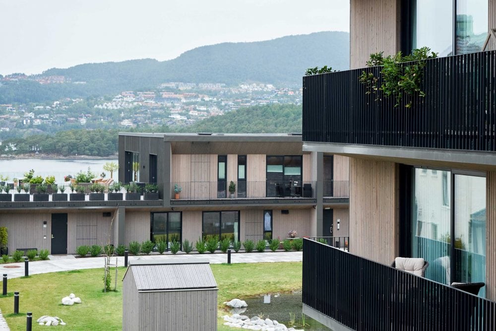 Skjoldnes projektet består af 6 bygninger, som ligger helt yderst mod vandet nær Bergen.
